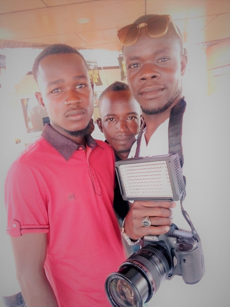 Plateau de tournage I A la terrasse de TGV hôtel avec le OPV MBAIGOLMEM K. Nimrod à droite, et le groupe N.S.A(New Soleil d’Afrique), DAM Star au milieu et G.A.D. 2 à gauche